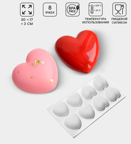 Форма для выпечки и муссовых десертов, 8 ячеек, 30х17,5х3 см "Сердца"